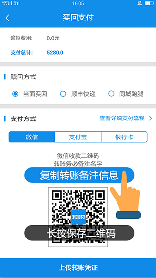 2、按买回页面展示的转账方式完成对应金额的转账,转账时请务必填写备注信息(备注信息需包含:用户姓名+用户电话+订单号)。