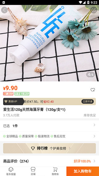 4、点击想要购买的商品图片,加入购物车,可以查看商品的价格和详细信息