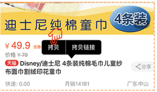 1、首先在淘宝app中挑选喜欢的商品,长按其标题选择拷贝标题或链接
