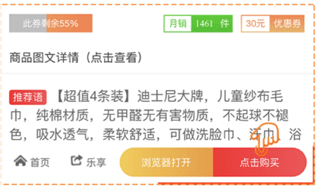 3、选择对应商品并查看详情,然后点击领券购买按钮,复制淘口令后继续打开淘宝app