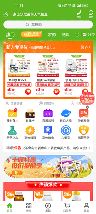 【限量秒杀】限量秒杀,每晚8点开抢低价商品;【一键下单】优质农资商品一键下单,物流节点实时查询;
