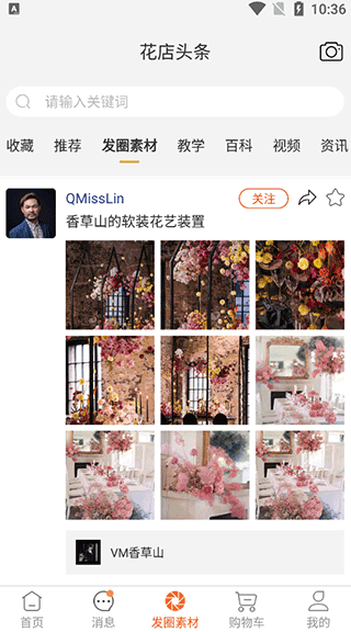 3、在发圈素材中,用户可以查看商家展示的各种花朵素材。