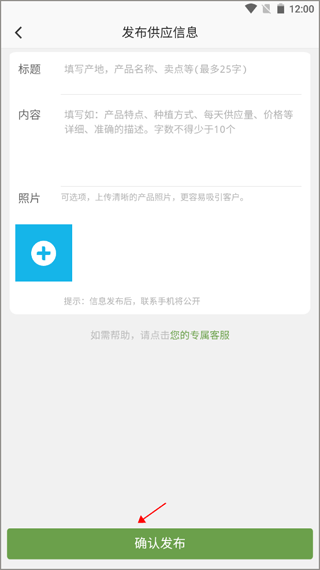 5、商家可以发布农产品、农资、土特产等图文信息。