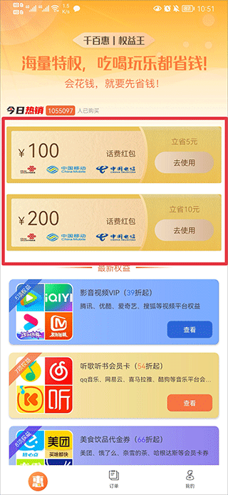 千百惠app是一款帮您省钱又省心的优惠权益生活电商综合平台,软件中严选各大平台的优质折扣卡,全场商品尊享专属购物折扣,让您拥有高性价比的购物体验。同时软件中优惠券种类齐全,涵盖了生活中的吃喝玩乐全类型,以及各种商品优惠券,各种优惠福利免费领取,让用户可以节省自己的购物开销,享受更多优惠折扣,从而为用户带来更贴心的网上购物体验。