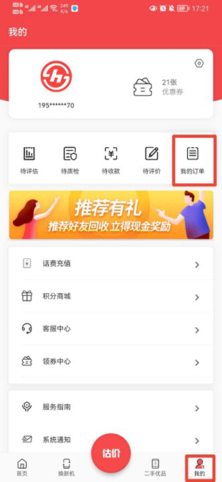一、首先我们打开速回收app,找到”我的“页面,点击我的订单。