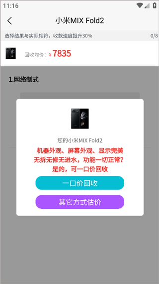 免费估价几秒完成,本机回收一键估价