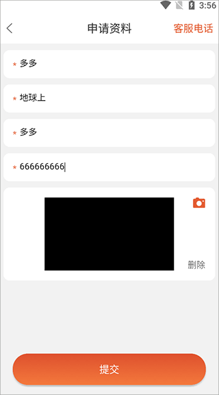 3、填上基本信息,从上到下分别是:企业名称、企业地址、姓名、手机号码,营业执照为可选内容,最后找到并点击“提交”按键。