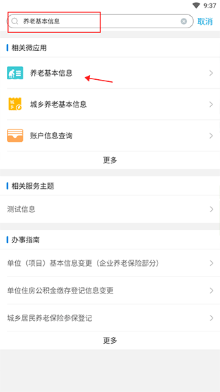 3、也可以在上方的搜索栏搜索养老基本信息查询