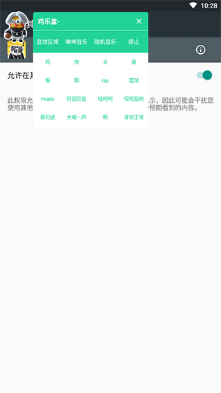 1、打开鸡乐盒软件,开启悬浮窗权限他就会缩小出现在屏幕上,如图所示
