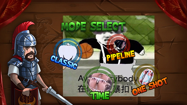 3、屏幕上会弹出各种坤坤模型的水果,此时我们要滑动屏幕切碎他,即可获得得分,