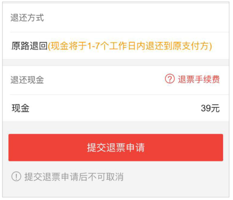 3、确定退票信息后,点击【提交退票申请】