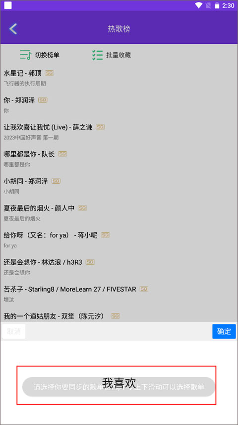 4、下一步就是选择你收藏的榜单,点击确定按钮。