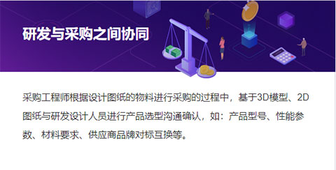 采购工程师根据设计图纸的物料进行采购的过程中,基于3D模型、2D图纸与研发设计人员进行产品选型沟通确认,如:产品型号、性能参数、材料要求、供应商品牌对标互换等。