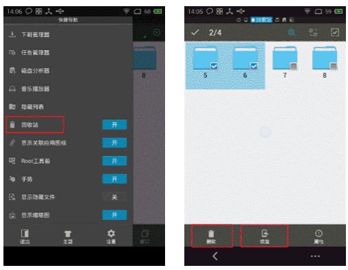 为了避免误删文件,或者想恢复之前删除的文件,ES文件浏览器开发了回收站的功能。在回收站开启的情况下,您删除的文件都会被临时存放在回收站中,可以随时恢复。