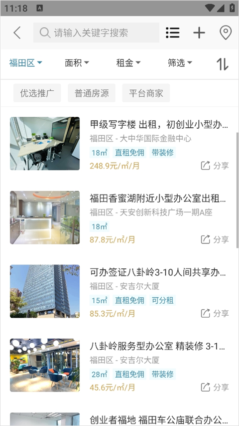 3、然后就可以看到一系列符合你需求的写字楼了。