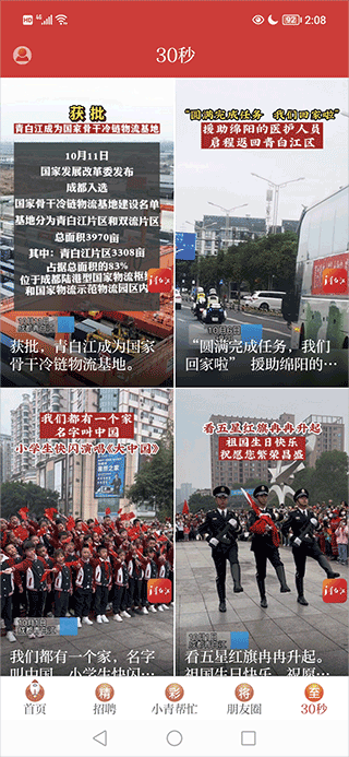 1、打开i青白江移动客户端,在软件的“30秒”栏目中就可以查看新闻了;