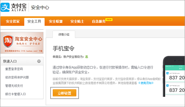 1、动态密码设置:动态保护你的支付宝帐号、邮箱的安全;2、安全提醒通知:消费、登录异常及时通知,帐号安全尽在掌握;