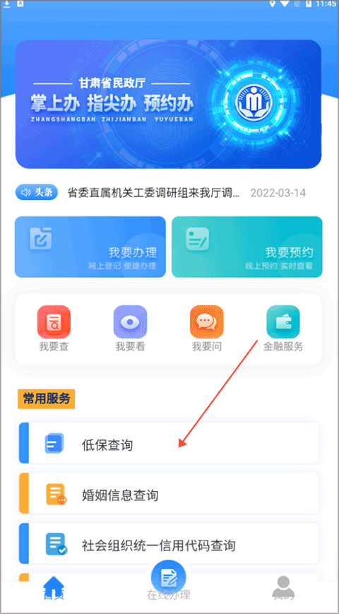 婚姻登记预约、低保申请预约、社会救助核查预约 。