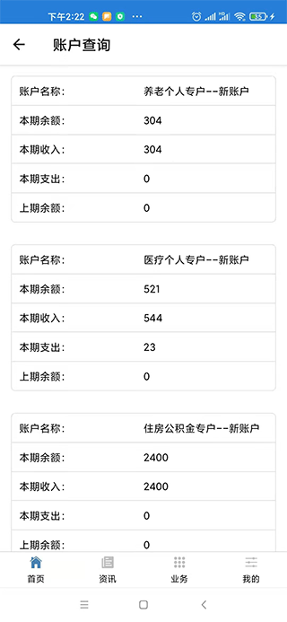 三、完成认证后即可查看公积金余额,缴费记录可以在业务—缴费入账—新账户缴费中查询。