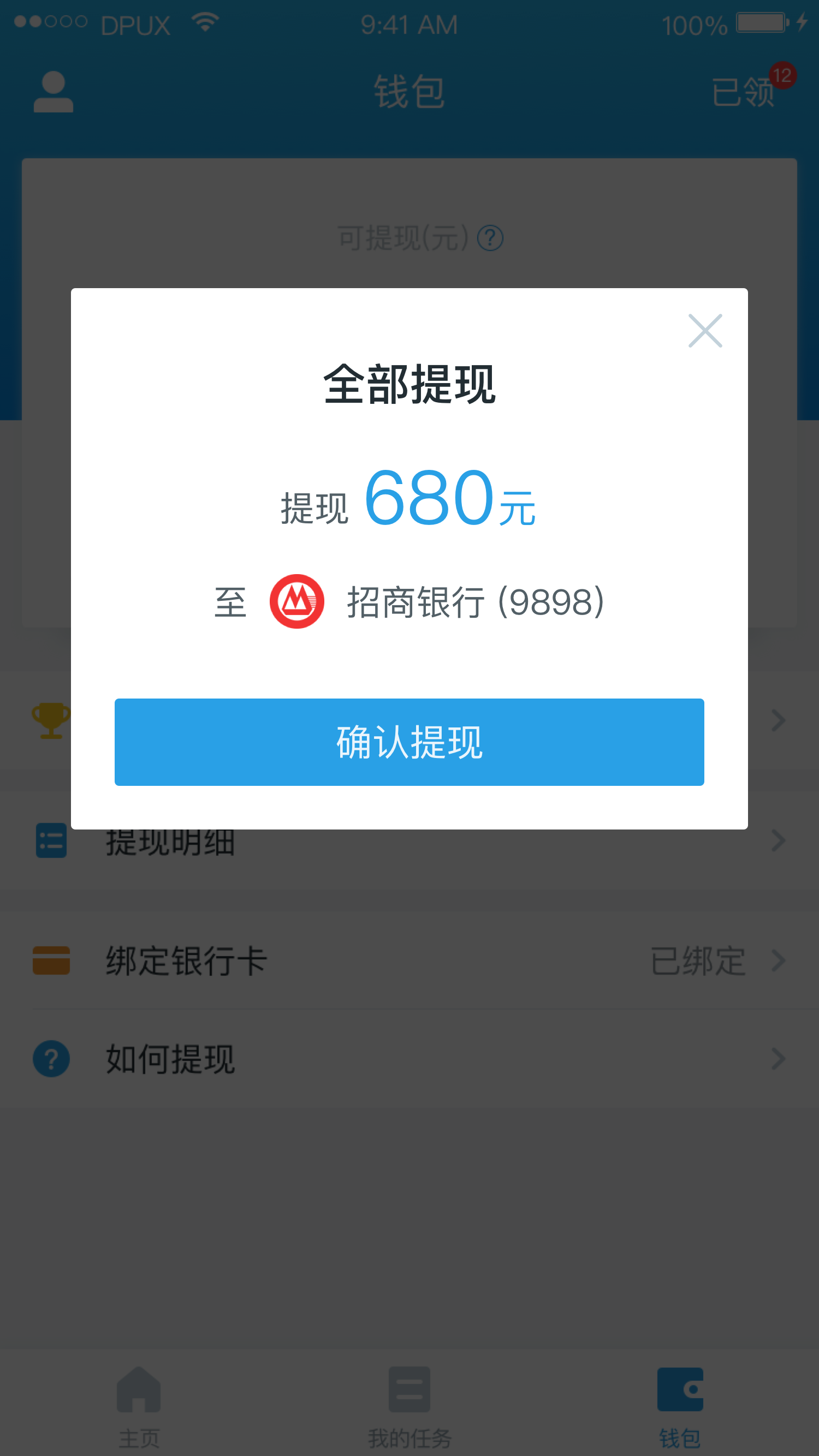 银行卡方式提现:绑定银行卡申请提现可实时到账,目前支持绑定银行的银行卡有:工商银行、中国银行、建设银行、中国农业银行、交通银行、招商银行、民生银行、兴业银行、中信银行、光大银行等。建议绑定储蓄卡