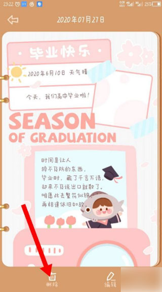 2、弹出手帐本设置页面,点击左下角的垃圾箱图标