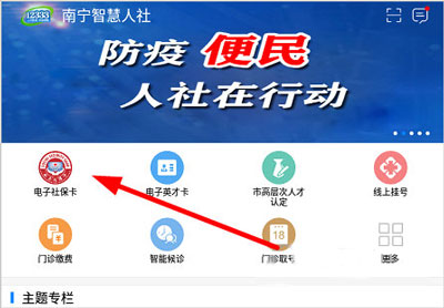 1、进入到主界面,我们点击上的“电子社保卡”。
