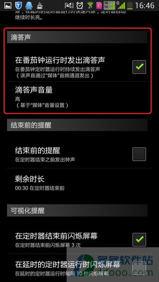 4、(可选)在番茄钟定时器运行过程中的持续发出滴答声