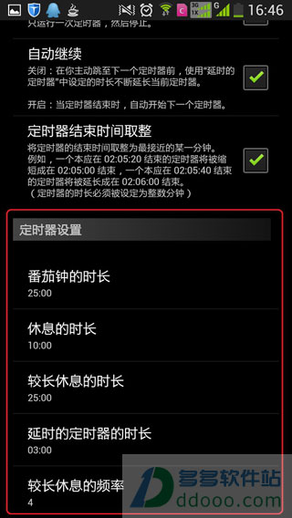 2、番茄钟和休息可以分别设置结束时和临近结束时的声音