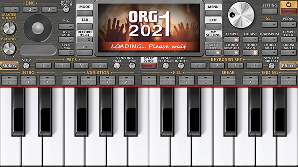 •模拟KORG键盘与:退色,同步,键盘设置,节奏,转置,八度,平衡,调整,分裂,和弦记忆,点击速度/重置…