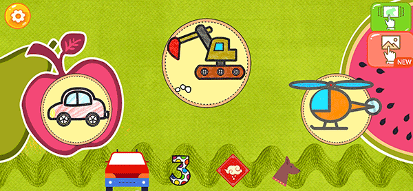 在我们的绘画模式中,宝贝循环渐进画出一个又一个可爱的角色:一只青蛙,一只小汽车,一只小狗......一旦画出来,每个角色都会活灵活现。汽车开始跳舞,小狗舞尾巴,青蛙跳起来跳跃......按下按钮,孩子们可以用自己的图画玩。 孩子画的角色会跳舞,转翻筋斗,做有趣的魔术。最主要是绘画模型前后连接步步环扣可以引导小孩思考培养绘画兴趣。软件特色
