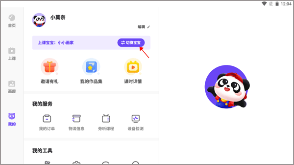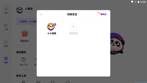 1、同一账号,如果有2个及以上的学员,可在“课表”或“我的”页面点击“切换宝宝”。