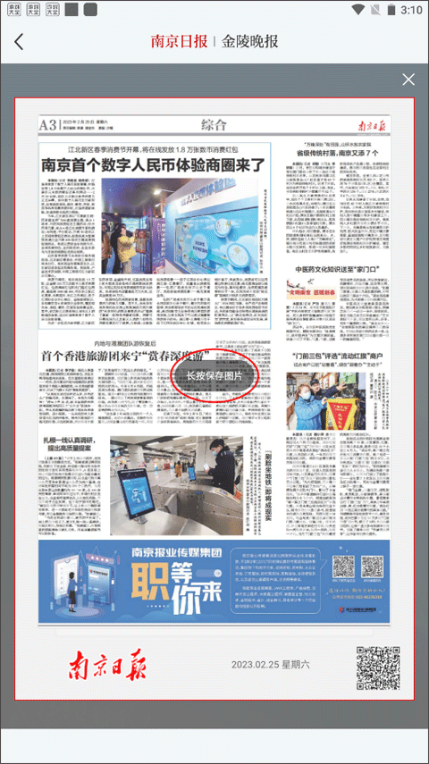 2、报纸分为了南京日报和金陵晚报,通过向下滑动切换不同版号的报纸;