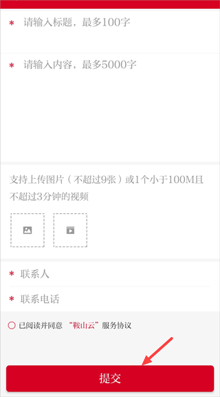 2、进入界面后,输入标题、内容后,上传图片点击提交即可。