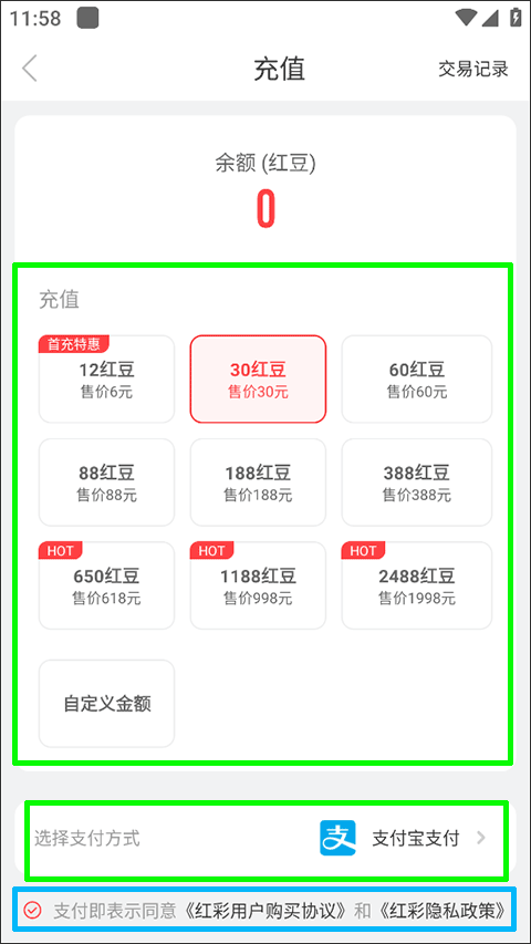 2、苹果支付服务器有时会出现波动,若半小时充值尚未到账请先退出APP,再重新打开查看账户余额,红豆仍未增加请添加客服微信:wyhongcai;