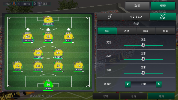 比赛中我们可控制球队的战术,其中包含站位、战术阵容、进攻防守以及任务等多项操作