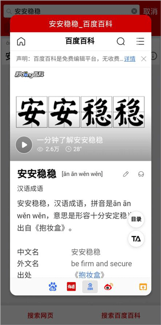 3、输入需要查询的成语,点击下方搜索网页/搜索百度百科;