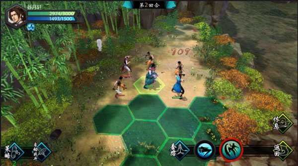 5、战斗系统:六角战棋的回合制,每回合开始时,玩家可以根据功体,进行增益,减益各种状态属性的调整,通过移动、出击来挑战对手。