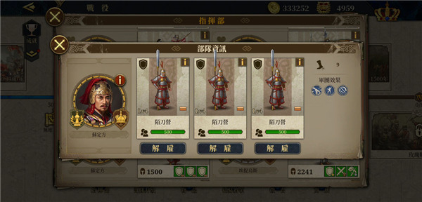 不过我的防步将还是配了兵的 最后那个位置想针对冲骑就军团矛 想双地形就陌刀