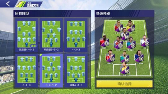 首先是阵型方面,游戏一上来默认的阵型是4-3-1-2这一攻击性很强的阵型,我们就一这一阵型为例,为大家来搭配球员!