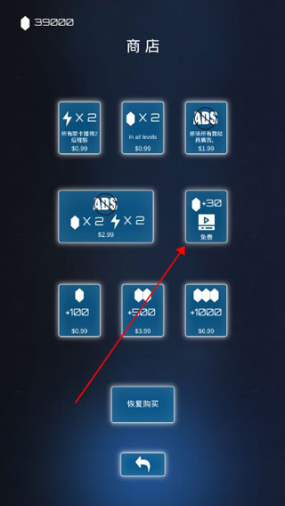 商店中点击如下图箭头指向位置,可无限制免费+1000金币。