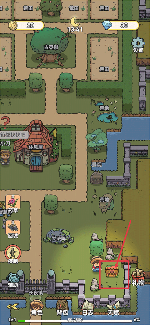 4、接着根据获取途径的指引在家园内寻找到宝箱,点击宝箱即可打开。灵石不一定每个宝箱都有,若打开的宝箱内没有灵石可以再寻找其他宝箱开启