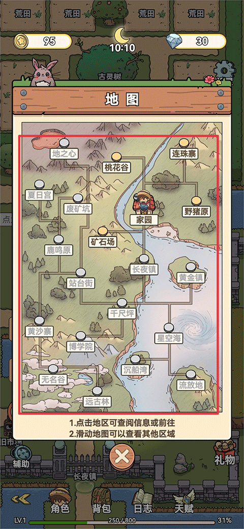 6、解锁传送阵可以获取到地图,点击地区名称后可以快速传送至其他区域