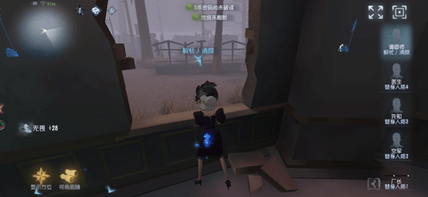 遇到这种情况就不要盲目开机子,可以让被打出红圈的队友卡在交互点在进行开机,就是一直在窗子旁边或者板子旁边绕。在搏命结束即将要结算伤害的时候,翻窗或者下板子,然后倒地再进行开机,这样的话就可以防止开机直接被监管者秒这种情况。卡监管者一个踩板或翻窗的交互时间,让他无法第一时间挂人