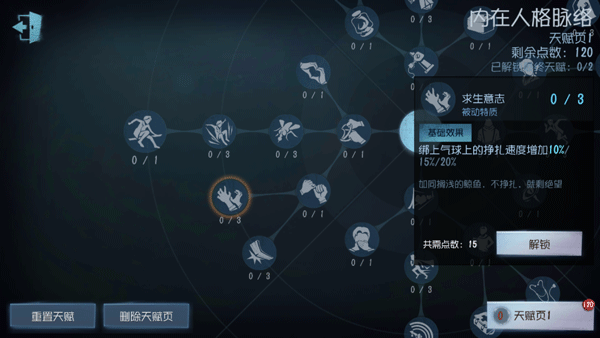 这个天赋作用很简单,就是延长上椅子时的飞天时间。分别是延长3%/6%/9%,别小瞧这一点时间!关键时候能有巨大作用!新手最大的问题就是不会牵制,容易秒倒,容易上椅子,那这样的话何尝不好好利用上椅子的时间来“牵制”监管,点满假寐,表面我在白给,实际上假寐多出来的时间都算你在拖延监管,那也算牵制监管,对自己技术不放心的话甚至还可以直接给队友发“别救,保平”,那这样直接坐满椅子,无形中牵制三台。细节牵制,直接拉满!