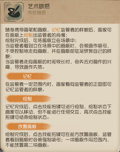 ② 画家需要看向监管者正面,才可以记住样貌,如果监管者背对画家,是无法记住样貌的;
