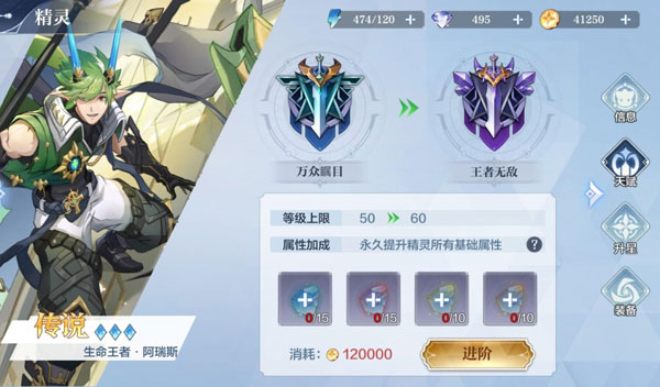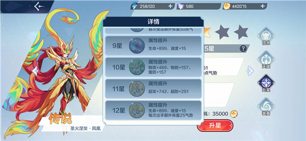 4、从4星升级到5星(品质突破至传说)需要消耗1只4星同属性精灵,以及10个传说突破石;