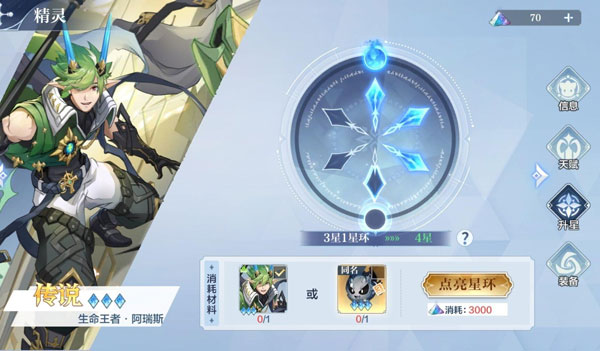 3、从3星升级到4星需要消耗2只3星同属性精灵;
