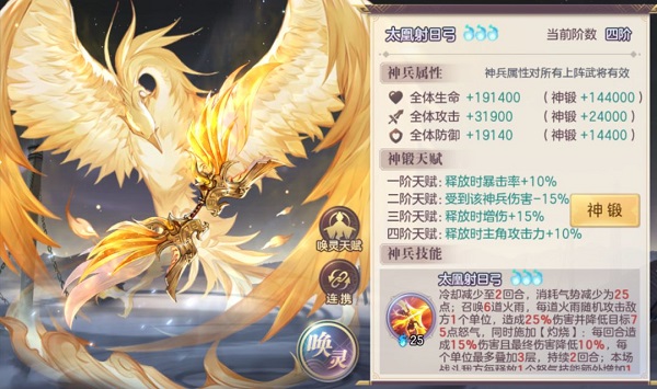 太凰射日弓:弓在无双版本后,大家基本人手一个弓,但在这里给大家泼个冷水,随着战力的膨胀,弓的输出越来越刮痧,且他的降怒同样受到怒气抗性的抵抗,整体效果更适合残局,擂台效果很不错。