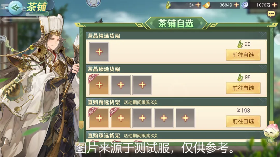 2、茶铺自选货架中,每个货架的“精选”与“普通”货物格内容物种类与数目均不相同,详情需小将军们点开查看噢~