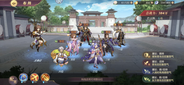 优先把“三分天下”中的辅助怒气加成点上,然后再主升“”群雄割据”中的阵图技能【不动如山】,提升全体免伤,来弥补没有肉盾的缺点,并提升阵容坦度。
